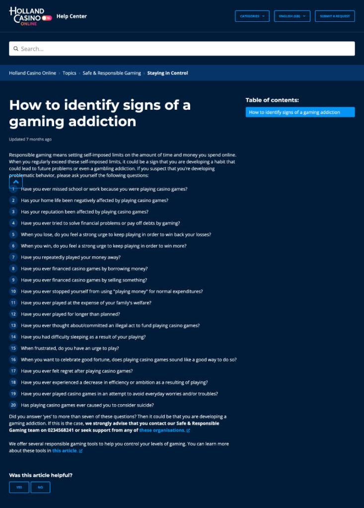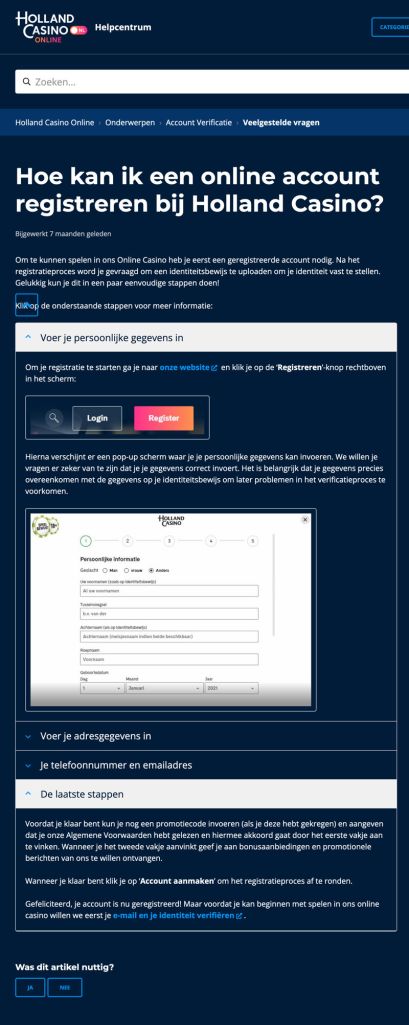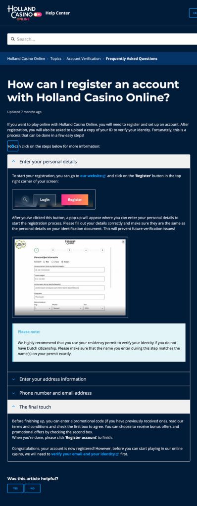 The images shown on this page are from Holland Casino Online’s FAQ Help Center, a project that I was lead copywriter for. I wrote over 200 help articles, conveying information concisely and in a way that would allow for logical follow-up questions and linked articles.